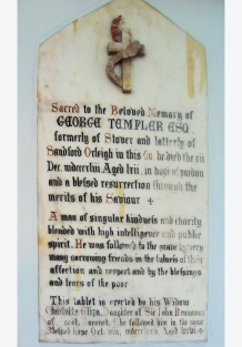At the time than James Templer I of Stove bought Stover estate, Teigngrace Church was very dilapidated. This was rebuilt by the children of James I as a memorial to their parents. See James II of Stover for more details.